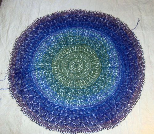 The Secret Garden Shawl has been blocked! and, yes, I am VERY proud of finishing it!